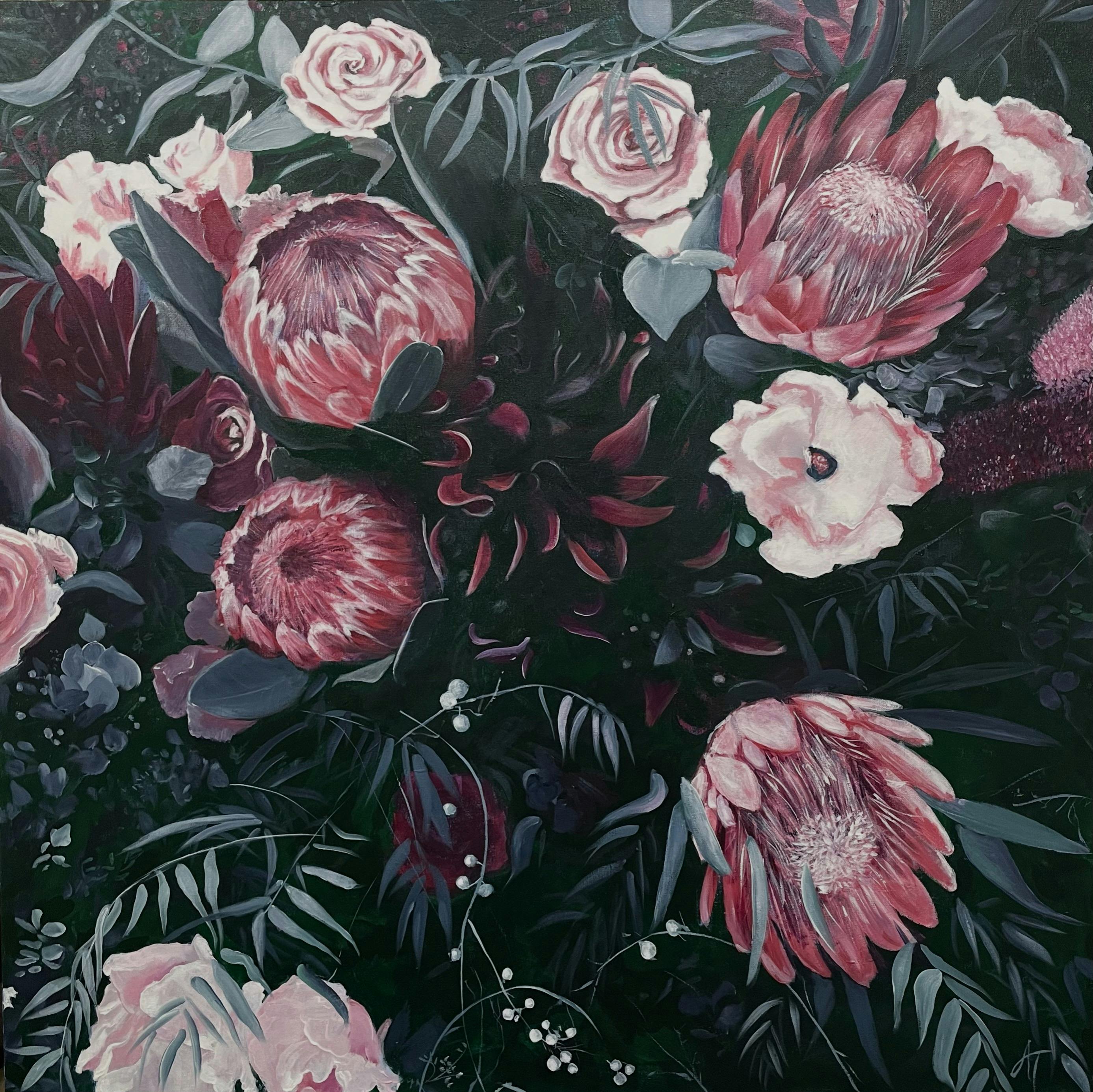 "Floral Gossips" Acrylic Painting on Canvas